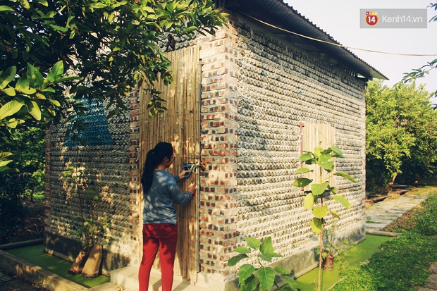 Chị Phương, Quản lý chung tại nông trại, một trong những người tham gia làm công trình này cho biết, ngôi nhà hợp lại từ 8.800 vỏ chai nhựa. Để thu gom đủ số vỏ chai, chị Phương và mọi người đã làm việc cật lực suốt 3 tuần. "Việc tìm vỏ chai không dễ dàng vì phải chọn vỏ có kích thước đồng đều".